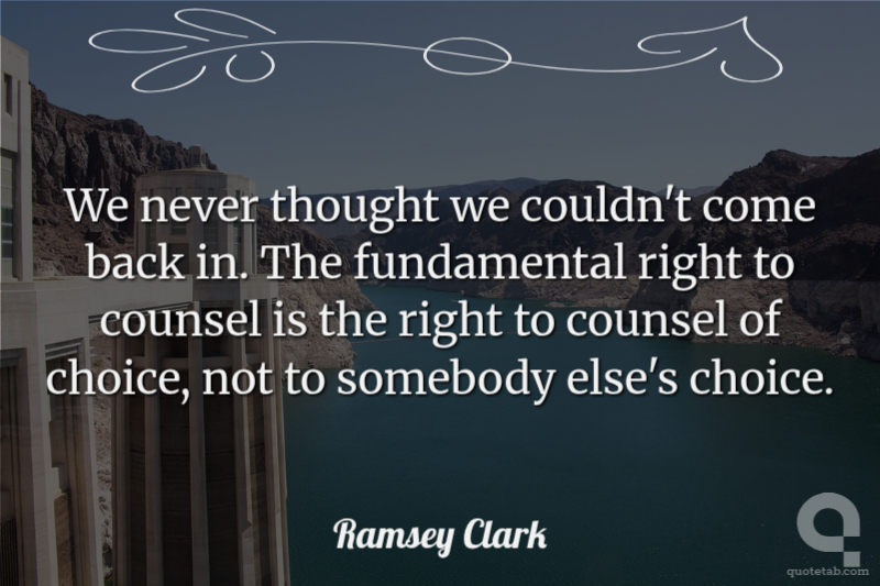 We never thought we couldn't come back in. The fundamental right to counsel is the right to counsel of choice, not to somebody else's choice.