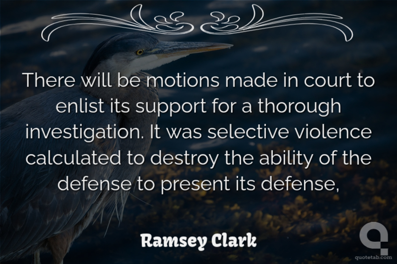 There will be motions made in court to enlist its support for a thorough investigation. It was selective violence calculated to destroy the ability of the defense to present its defense,