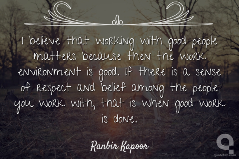 I believe that working with good people matters because then the work environment is good. If there is a sense of respect and belief among the people you work with, that is when good work is done.