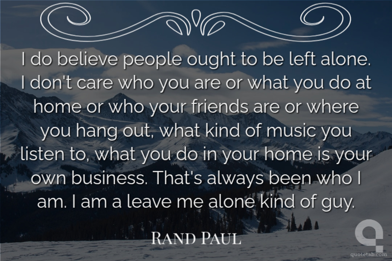 I do believe people ought to be left alone. I don't care who you are or what you do at home or who your friends are or where you hang out, what kind of music you listen to, what you do in your home is your own business. That's always been who I am. I am a leave me alone kind of guy.