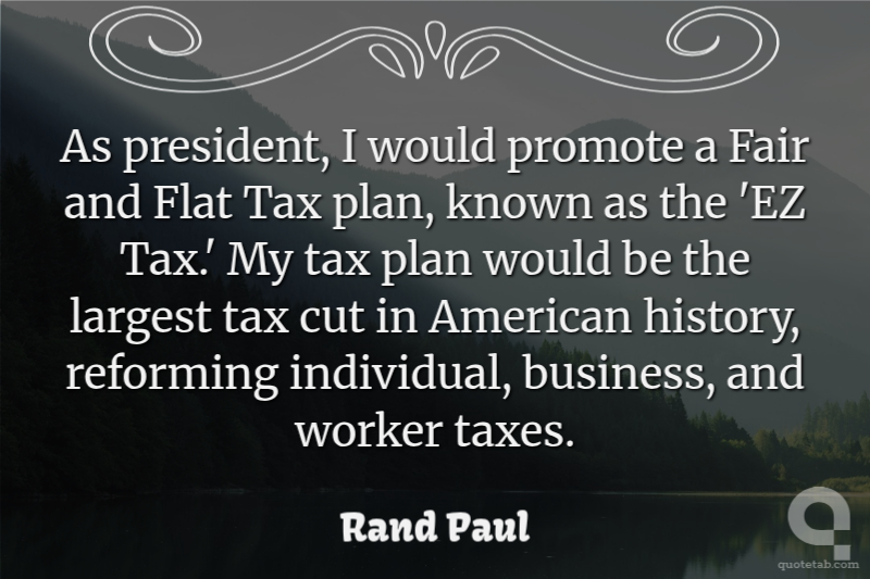 As president, I would promote a Fair and Flat Tax plan, known as the 'EZ Tax.' My tax plan would be the largest tax cut in American history, reforming individual, business, and worker taxes.