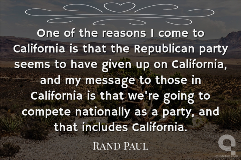 One of the reasons I come to California is that the Republican party seems to have given up on California, and my message to those in California is that we're going to compete nationally as a party, and that includes California.