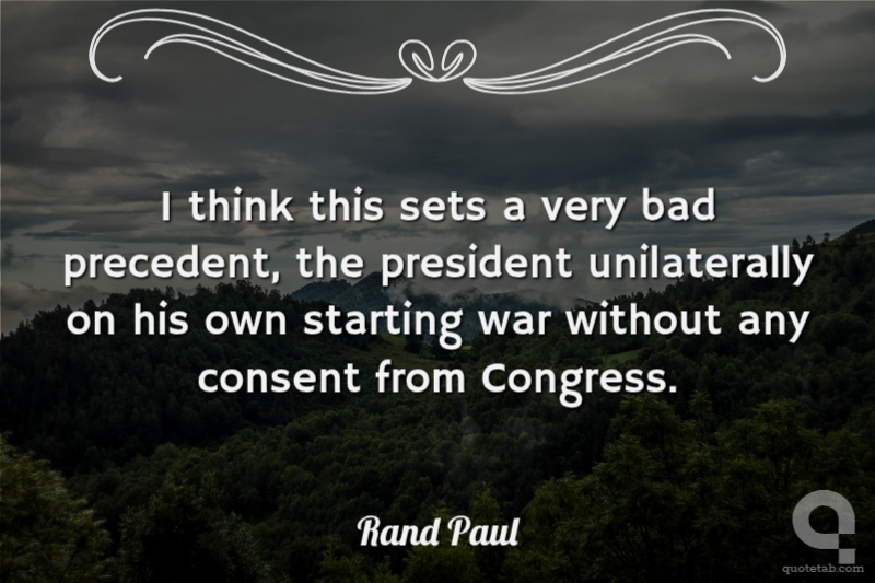 I think this sets a very bad precedent, the president unilaterally on his own starting war without any consent from Congress.