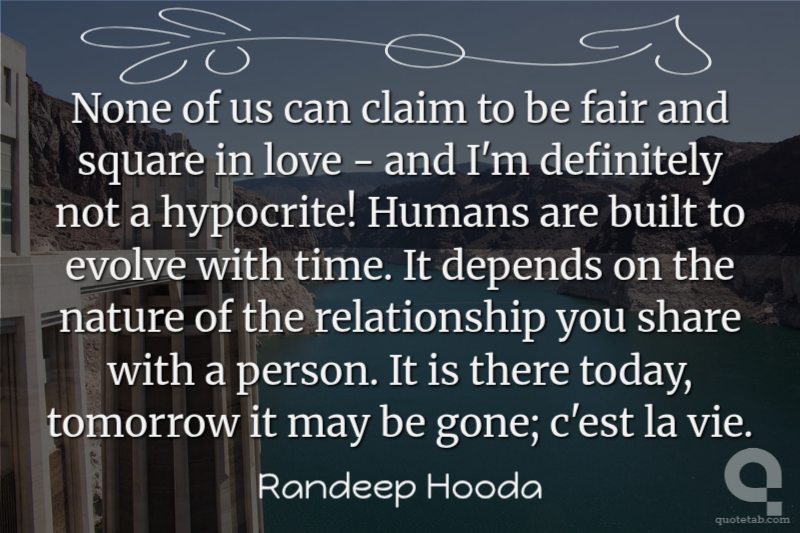 None of us can claim to be fair and square in love - and I'm definitely not a hypocrite! Humans are built to evolve with time. It depends on the nature of the relationship you share with a person. It is there today, tomorrow it may be gone; c'est la vie.
