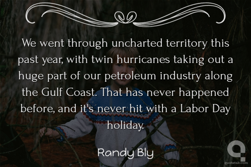 We went through uncharted territory this past year, with twin hurricanes taking out a huge part of our petroleum industry along the Gulf Coast. That has never happened before, and it's never hit with a Labor Day holiday.