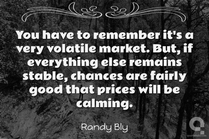 You have to remember it's a very volatile market. But, if everything else remains stable, chances are fairly good that prices will be calming.
