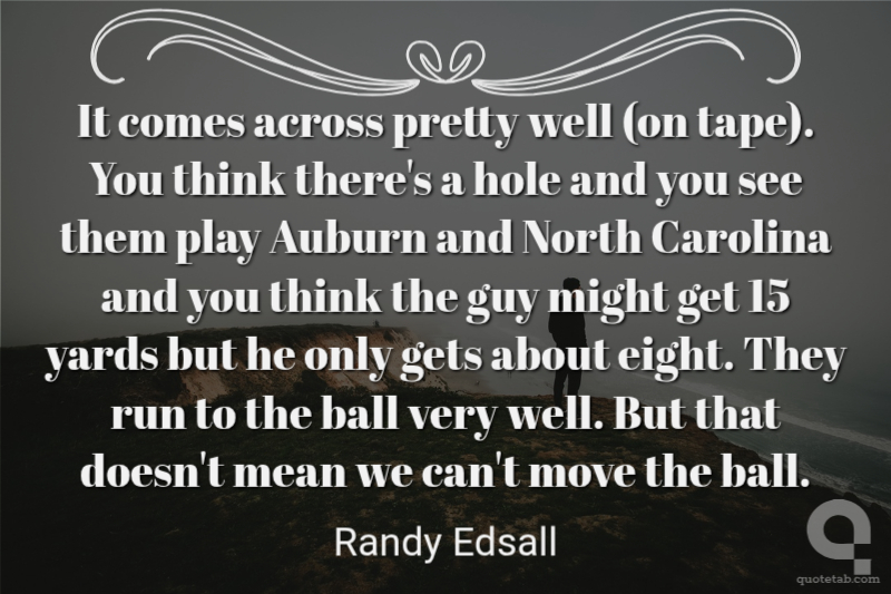 It comes across pretty well (on tape). You think there's a hole and you see them play Auburn and North Carolina and you think the guy might get 15 yards but he only gets about eight. They run to the ball very well. But that doesn't mean we can't move the ball.