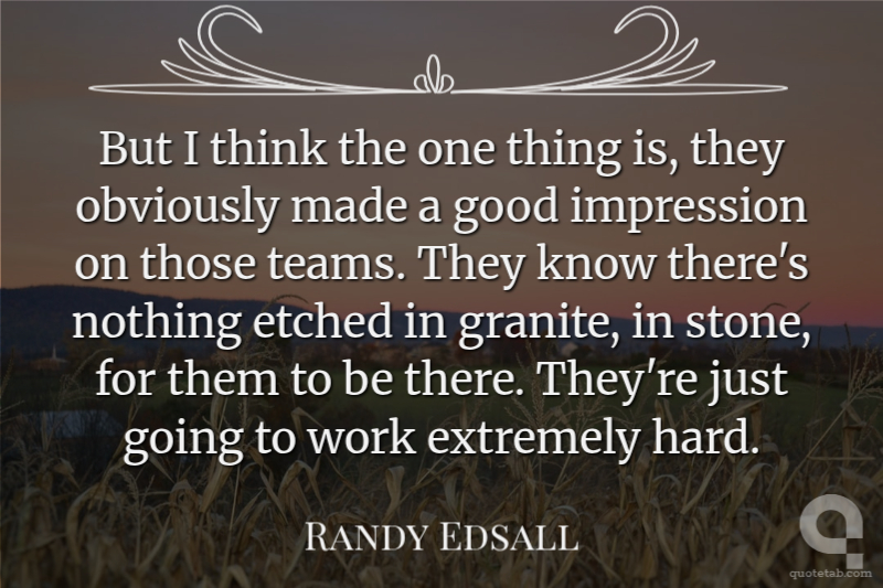 But I think the one thing is, they obviously made a good impression on those teams. They know there's nothing etched in granite, in stone, for them to be there. They're just going to work extremely hard.