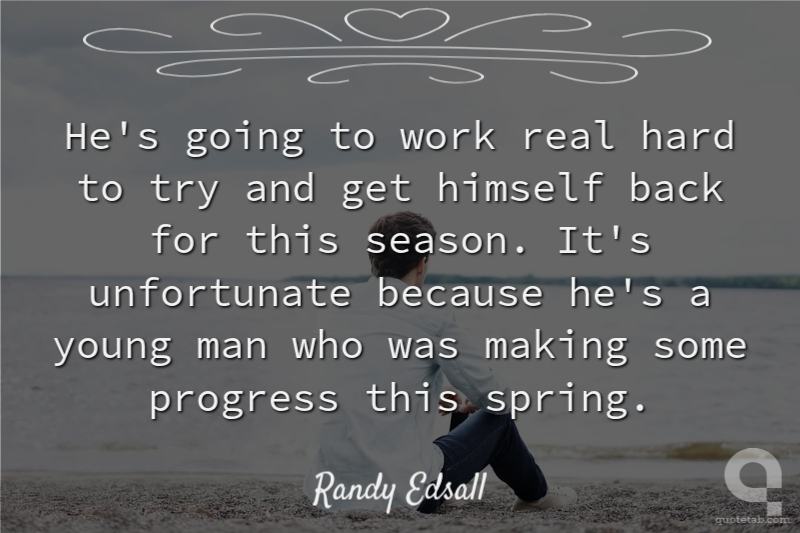 He's going to work real hard to try and get himself back for this season. It's unfortunate because he's a young man who was making some progress this spring.
