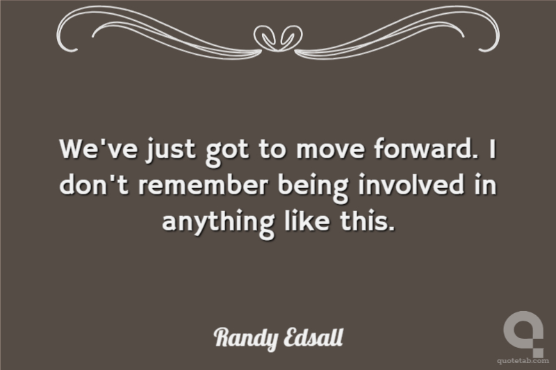 We've just got to move forward. I don't remember being involved in anything like this.