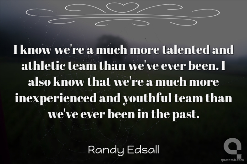 I know we're a much more talented and athletic team than we've ever been. I also know that we're a much more inexperienced and youthful team than we've ever been in the past.