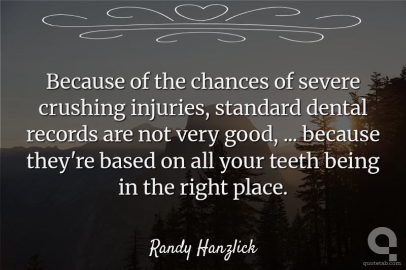 Because of the chances of severe crushing injuries, standard dental records are not very good, ... because they're based on all your teeth being in the right place.