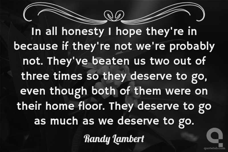 In all honesty I hope they're in because if they're not we're probably not. They've beaten us two out of three times so they deserve to go, even though both of them were on their home floor. They deserve to go as much as we deserve to go.