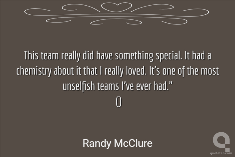 This team really did have something special. It had a chemistry about it that I really loved. It's one of the most unselfish teams I've ever had." ()