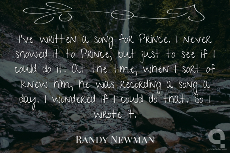 I've written a song for Prince. I never showed it to Prince, but just to see if I could do it. At the time, when I sort of knew him, he was recording a song a day. I wondered if I could do that. So I wrote it.