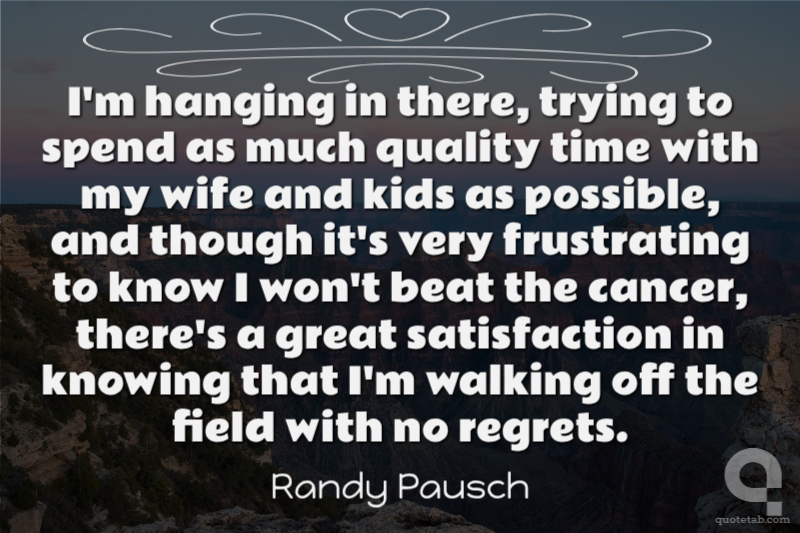 I'm hanging in there, trying to spend as much quality time with my wife and kids as possible, and though it's very frustrating to know I won't beat the cancer, there's a great satisfaction in knowing that I'm walking off the field with no regrets.