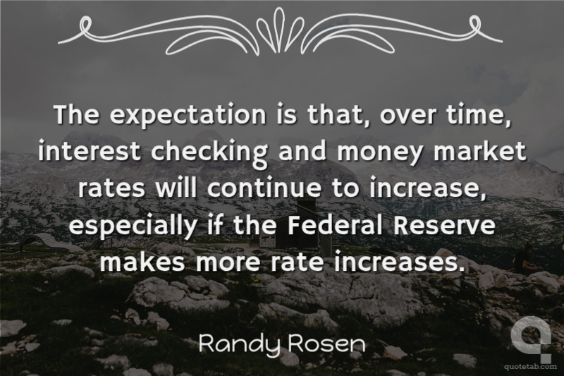 The expectation is that, over time, interest checking and money market rates will continue to increase, especially if the Federal Reserve makes more rate increases.