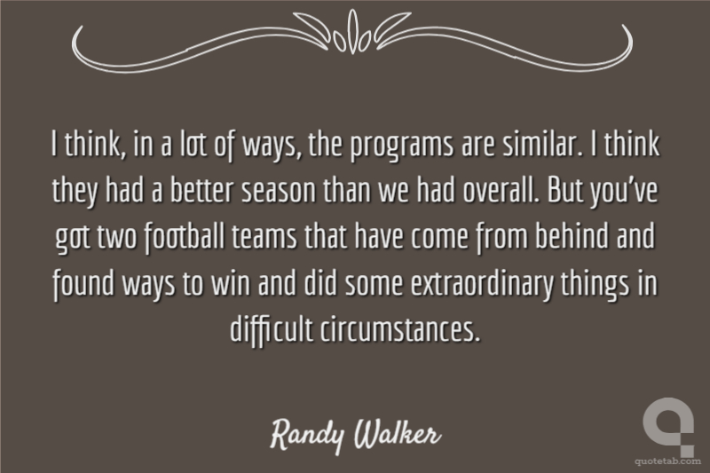 I think, in a lot of ways, the programs are similar. I think they had a better season than we had overall. But you've got two football teams that have come from behind and found ways to win and did some extraordinary things in difficult circumstances.