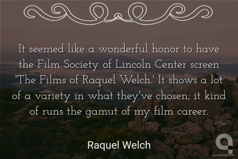 It seemed like a wonderful honor to have the Film Society of Lincoln Center screen 'The Films of Raquel Welch.' It shows a lot of a variety in what they've chosen; it kind of runs the gamut of my film career.