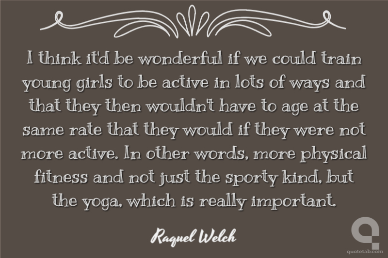 I think it'd be wonderful if we could train young girls to be active in lots of ways and that they then wouldn't have to age at the same rate that they would if they were not more active. In other words, more physical fitness and not just the sporty kind, but the yoga, which is really important.