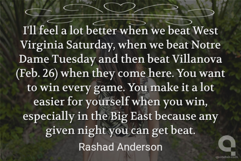 I'll feel a lot better when we beat West Virginia Saturday, when we beat Notre Dame Tuesday and then beat Villanova (Feb. 26) when they come here. You want to win every game. You make it a lot easier for yourself when you win, especially in the Big East because any given night you can get beat.