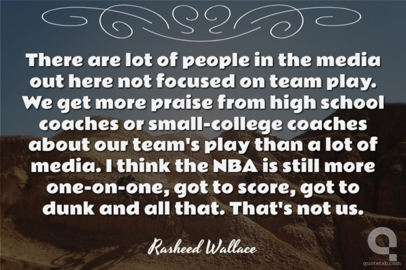 There are lot of people in the media out here not focused on team play. We get more praise from high school coaches or small-college coaches about our team's play than a lot of media. I think the NBA is still more one-on-one, got to score, got to dunk and all that. That's not us.