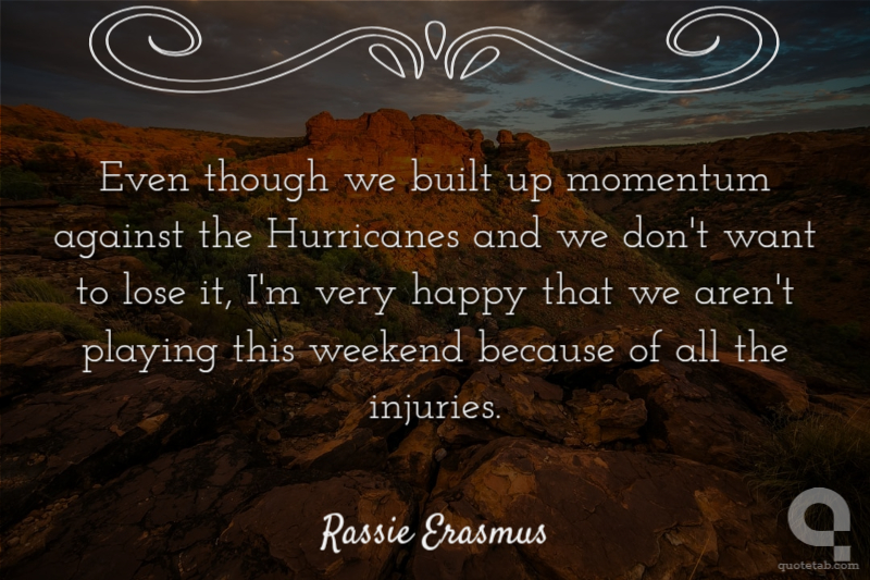 Even though we built up momentum against the Hurricanes and we don't want to lose it, I'm very happy that we aren't playing this weekend because of all the injuries.
