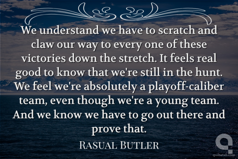We understand we have to scratch and claw our way to every one of these victories down the stretch. It feels real good to know that we're still in the hunt. We feel we're absolutely a playoff-caliber team, even though we're a young team. And we know we have to go out there and prove that.