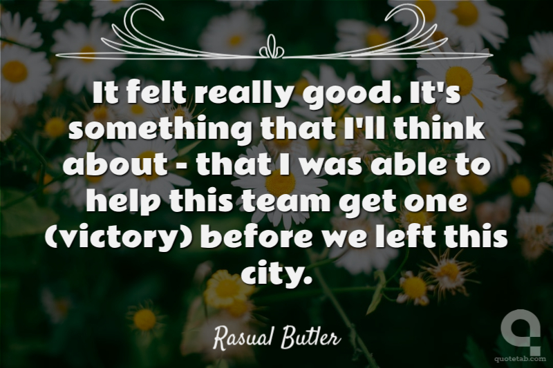 It felt really good. It's something that I'll think about - that I was able to help this team get one (victory) before we left this city.