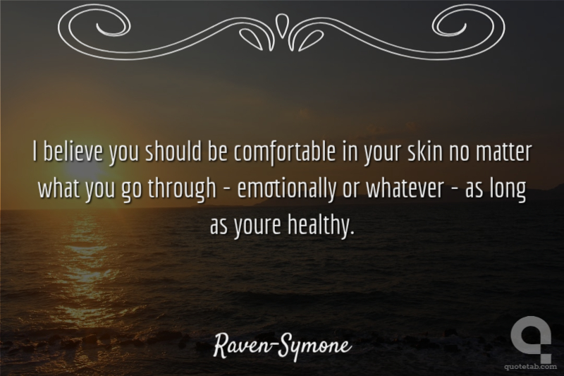 I believe you should be comfortable in your skin no matter what you go through - emotionally or whatever - as long as youre healthy.
