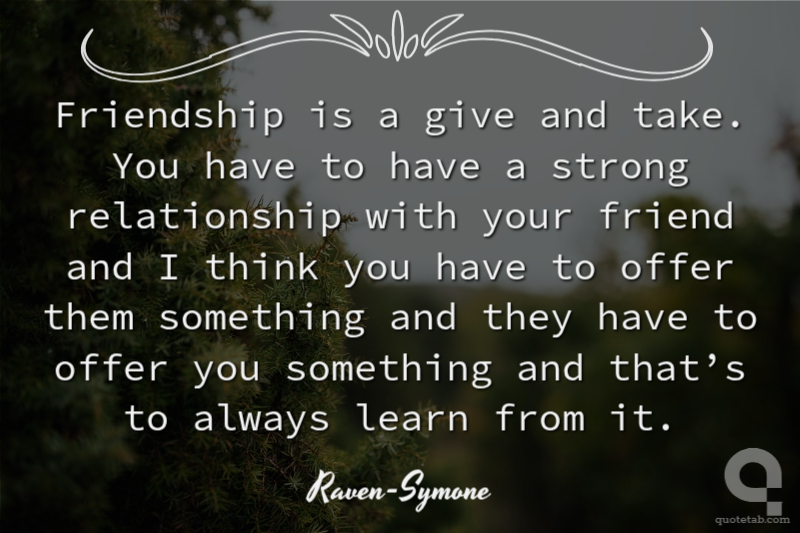 Friendship is a give and take. You have to have a strong relationship with your friend and I think you have to offer them something and they have to offer you something and that’s to always learn from it.