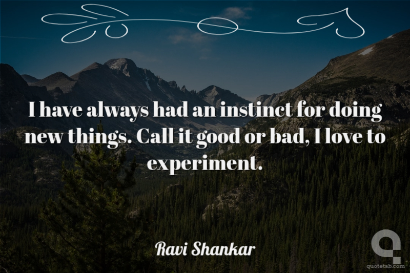 I have always had an instinct for doing new things. Call it good or bad, I love to experiment.