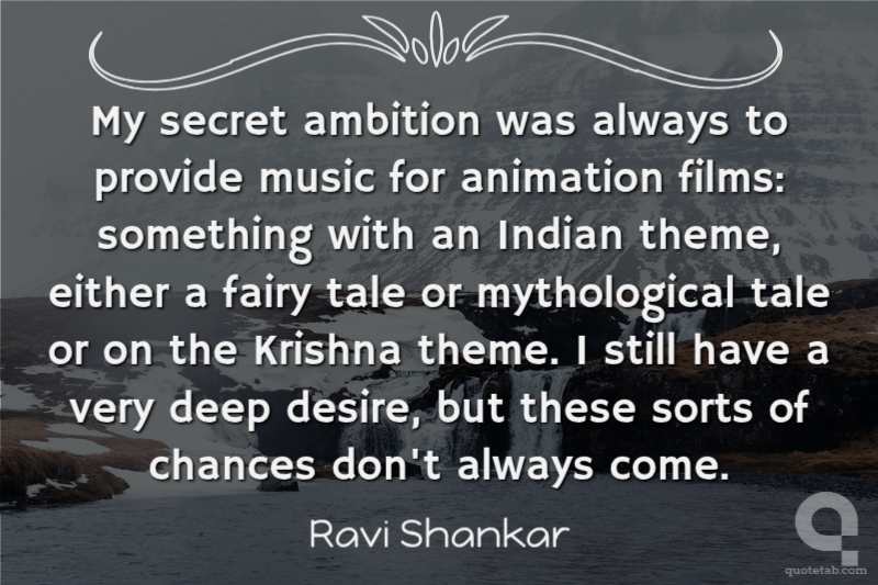 My secret ambition was always to provide music for animation films: something with an Indian theme, either a fairy tale or mythological tale or on the Krishna theme. I still have a very deep desire, but these sorts of chances don't always come.