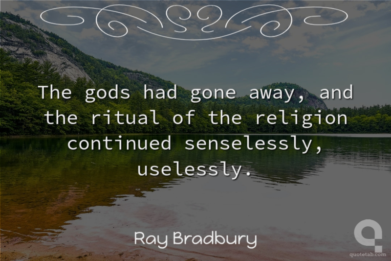 The gods had gone away, and the ritual of the religion continued senselessly, uselessly.