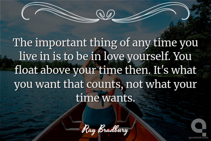 The important thing of any time you live in is to be in love yourself. You float above your time then. It's what you want that counts, not what your time wants.