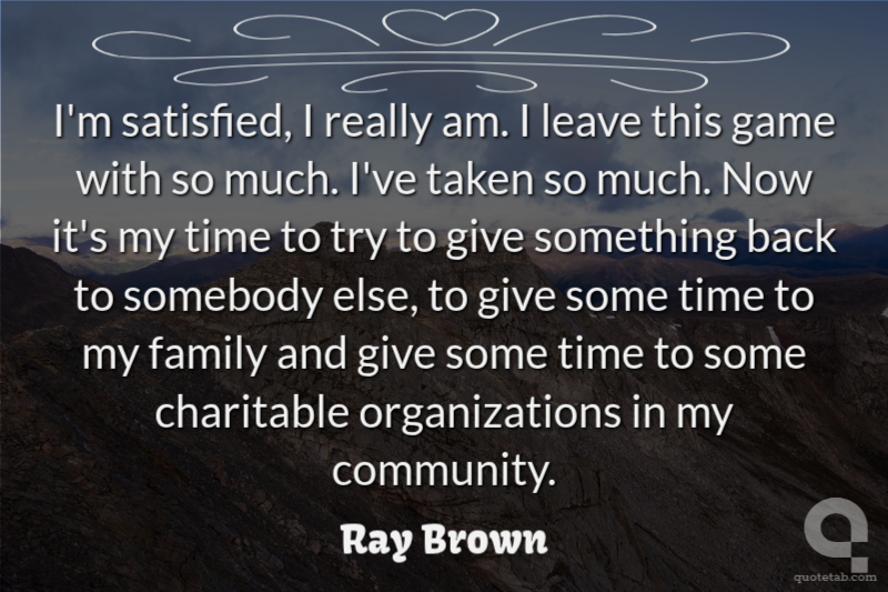 I'm satisfied, I really am. I leave this game with so much. I've taken so much. Now it's my time to try to give something back to somebody else, to give some time to my family and give some time to some charitable organizations in my community.