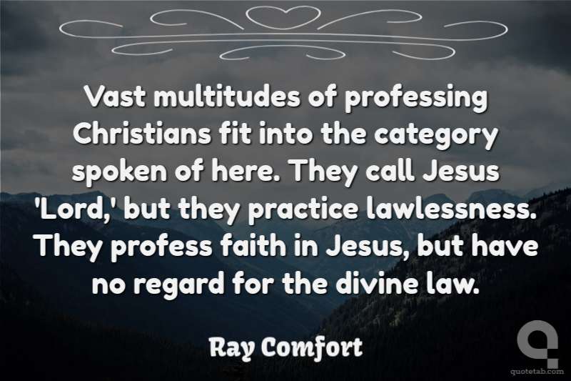 Vast multitudes of professing Christians fit into the category spoken of here. They call Jesus 'Lord,' but they practice lawlessness. They profess faith in Jesus, but have no regard for the divine law.