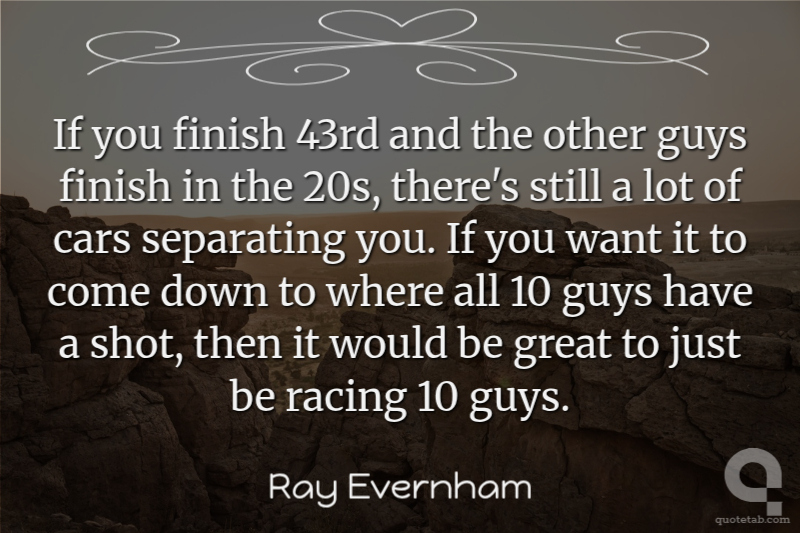 If you finish 43rd and the other guys finish in the 20s, there's still a lot of cars separating you. If you want it to come down to where all 10 guys have a shot, then it would be great to just be racing 10 guys.