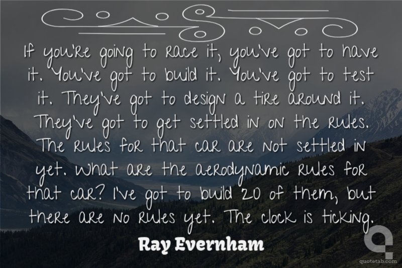 If you're going to race it, you've got to have it. You've got to build it. You've got to test it. They've got to design a tire around it. They've got to get settled in on the rules. The rules for that car are not settled in yet. What are the aerodynamic rules for that car? I've got to build 20 of them, but there are no rules yet. The clock is ticking.