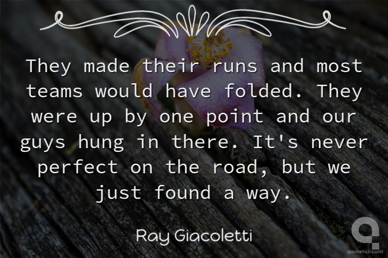 They made their runs and most teams would have folded. They were up by one point and our guys hung in there. It's never perfect on the road, but we just found a way.