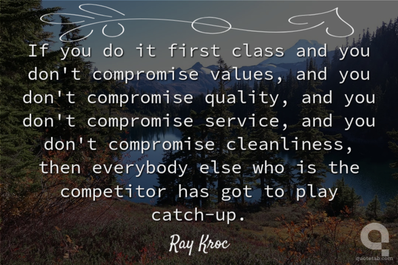 If you do it first class and you don't compromise values, and you don't compromise quality, and you don't compromise service, and you don't compromise cleanliness, then everybody else who is the competitor has got to play catch-up.