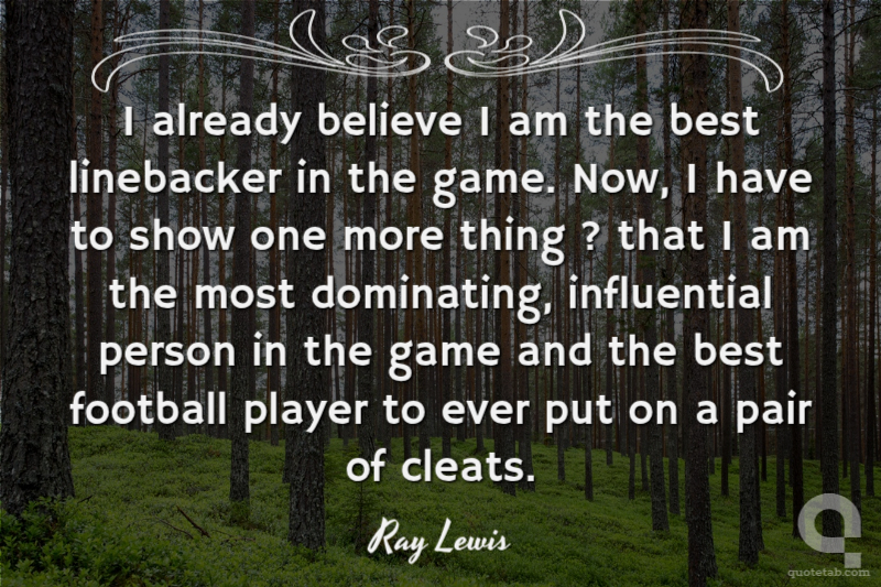 I already believe I am the best linebacker in the game. Now, I have to show one more thing ? that I am the most dominating, influential person in the game and the best football player to ever put on a pair of cleats.