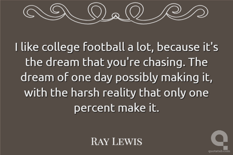 I like college football a lot, because it's the dream that you're chasing. The dream of one day possibly making it, with the harsh reality that only one percent make it.