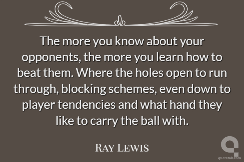 The more you know about your opponents, the more you learn how to beat them. Where the holes open to run through, blocking schemes, even down to player tendencies and what hand they like to carry the ball with.