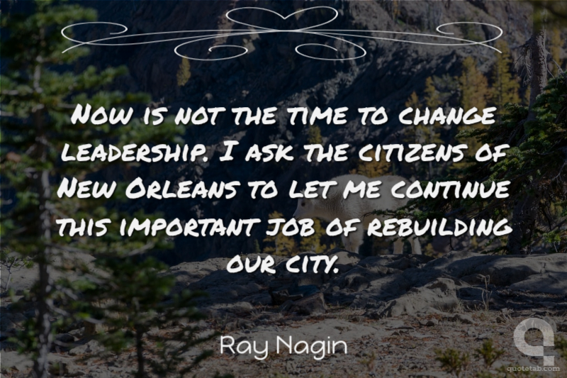 Now is not the time to change leadership. I ask the citizens of New Orleans to let me continue this important job of rebuilding our city.