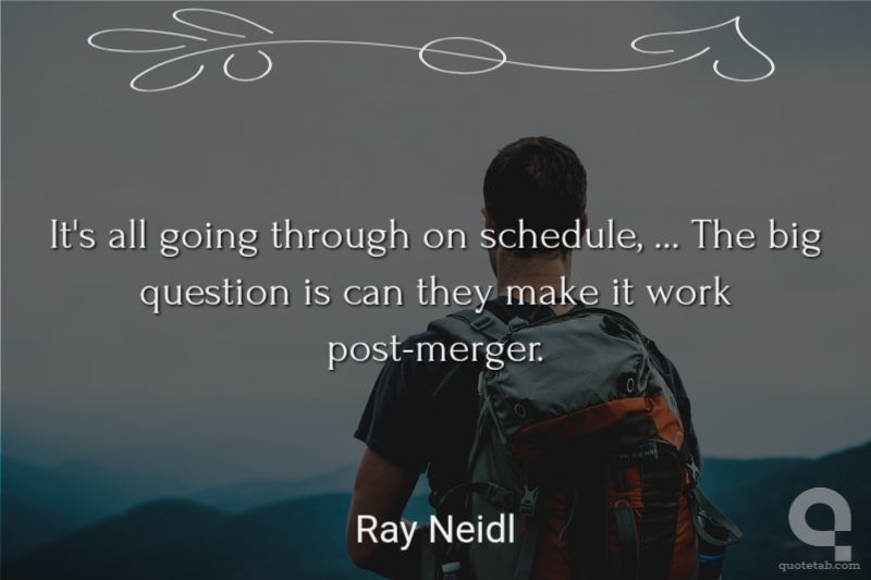 It's all going through on schedule, ... The big question is can they make it work post-merger.