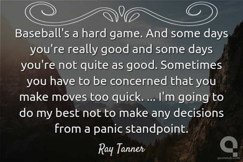Baseball's a hard game. And some days you're really good and some days you're not quite as good. Sometimes you have to be concerned that you make moves too quick. ... I'm going to do my best not to make any decisions from a panic standpoint.