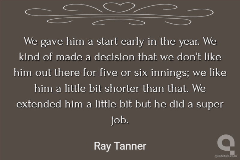 We gave him a start early in the year. We kind of made a decision that we don't like him out there for five or six innings; we like him a little bit shorter than that. We extended him a little bit but he did a super job.