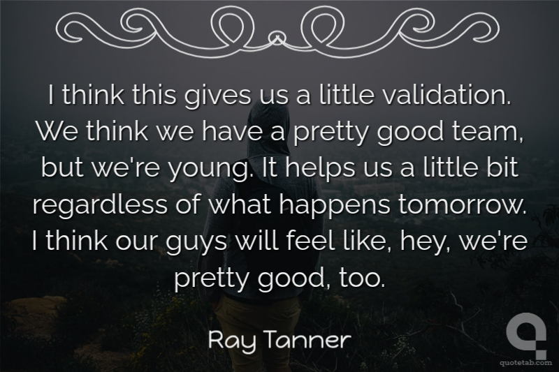 I think this gives us a little validation. We think we have a pretty good team, but we're young. It helps us a little bit regardless of what happens tomorrow. I think our guys will feel like, hey, we're pretty good, too.