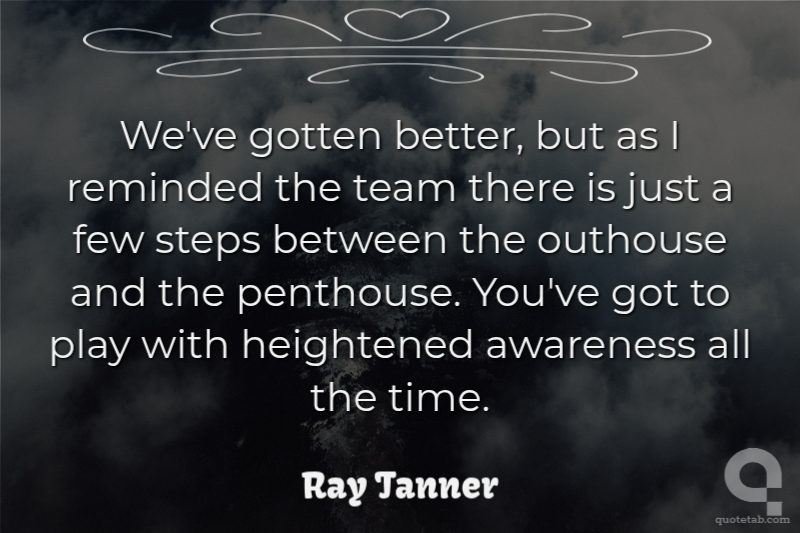 We've gotten better, but as I reminded the team there is just a few steps between the outhouse and the penthouse. You've got to play with heightened awareness all the time.